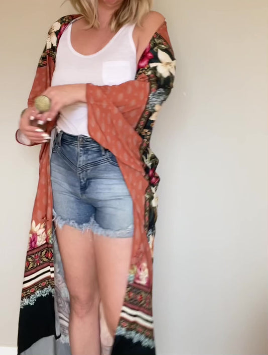 QUIMONO ROSA ESTAMPADO DE SHANTUNG