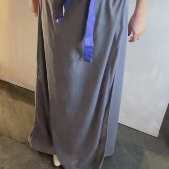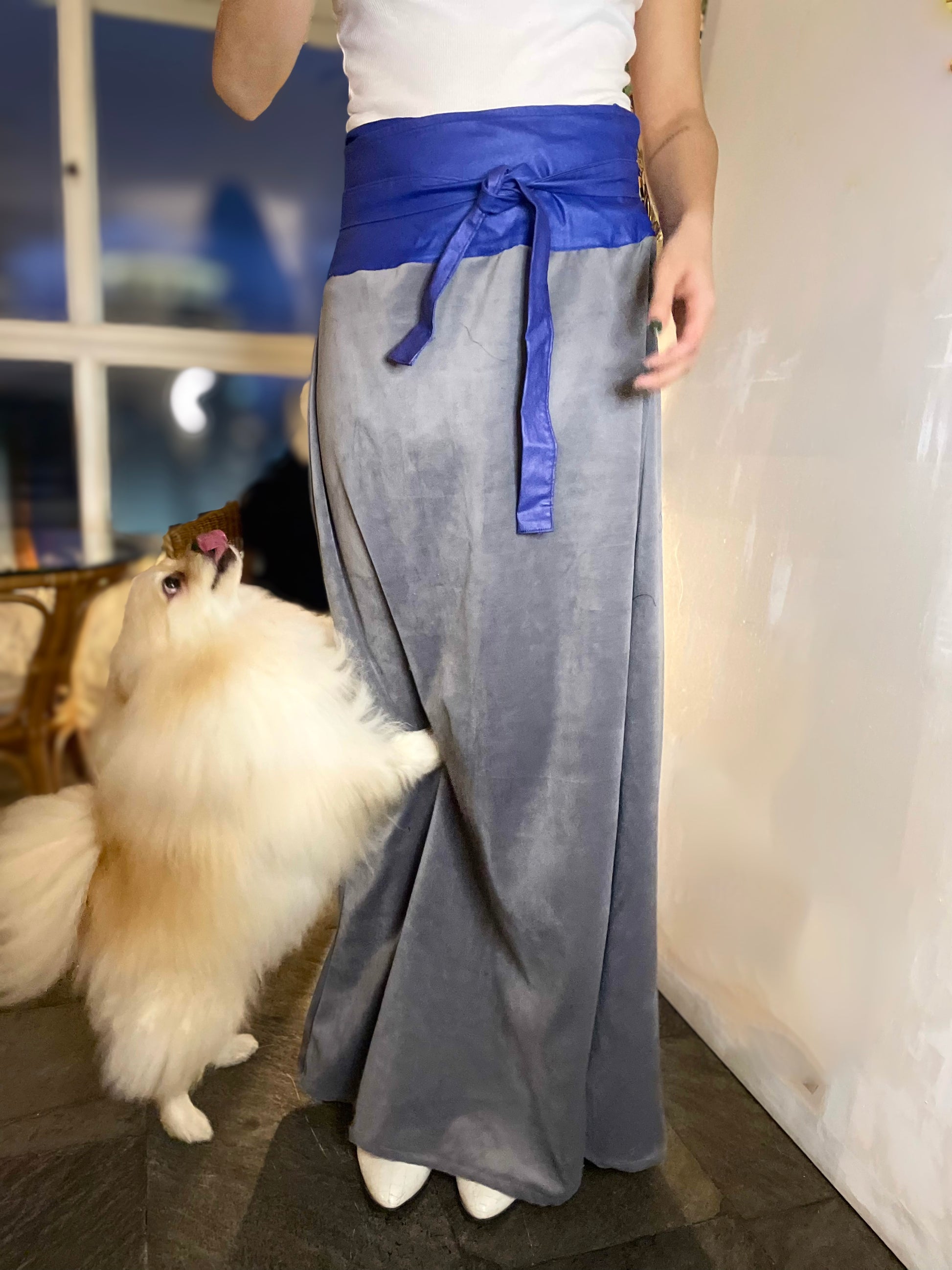 Saia Maxi Modelo Envelope em Plush e Couro Sintético.