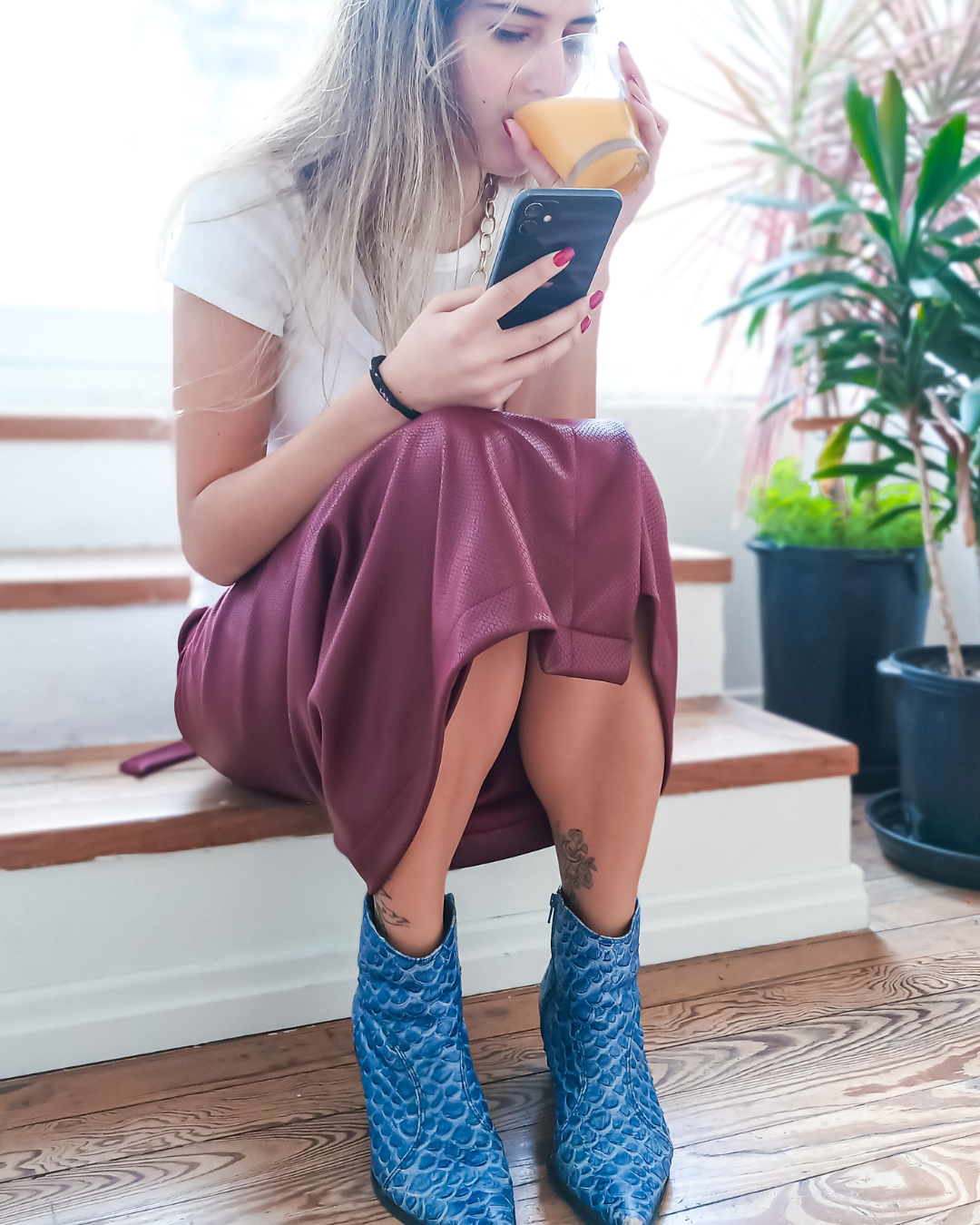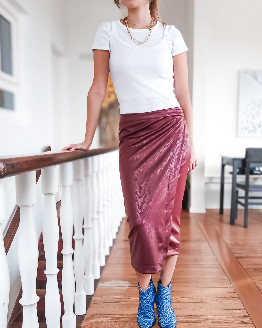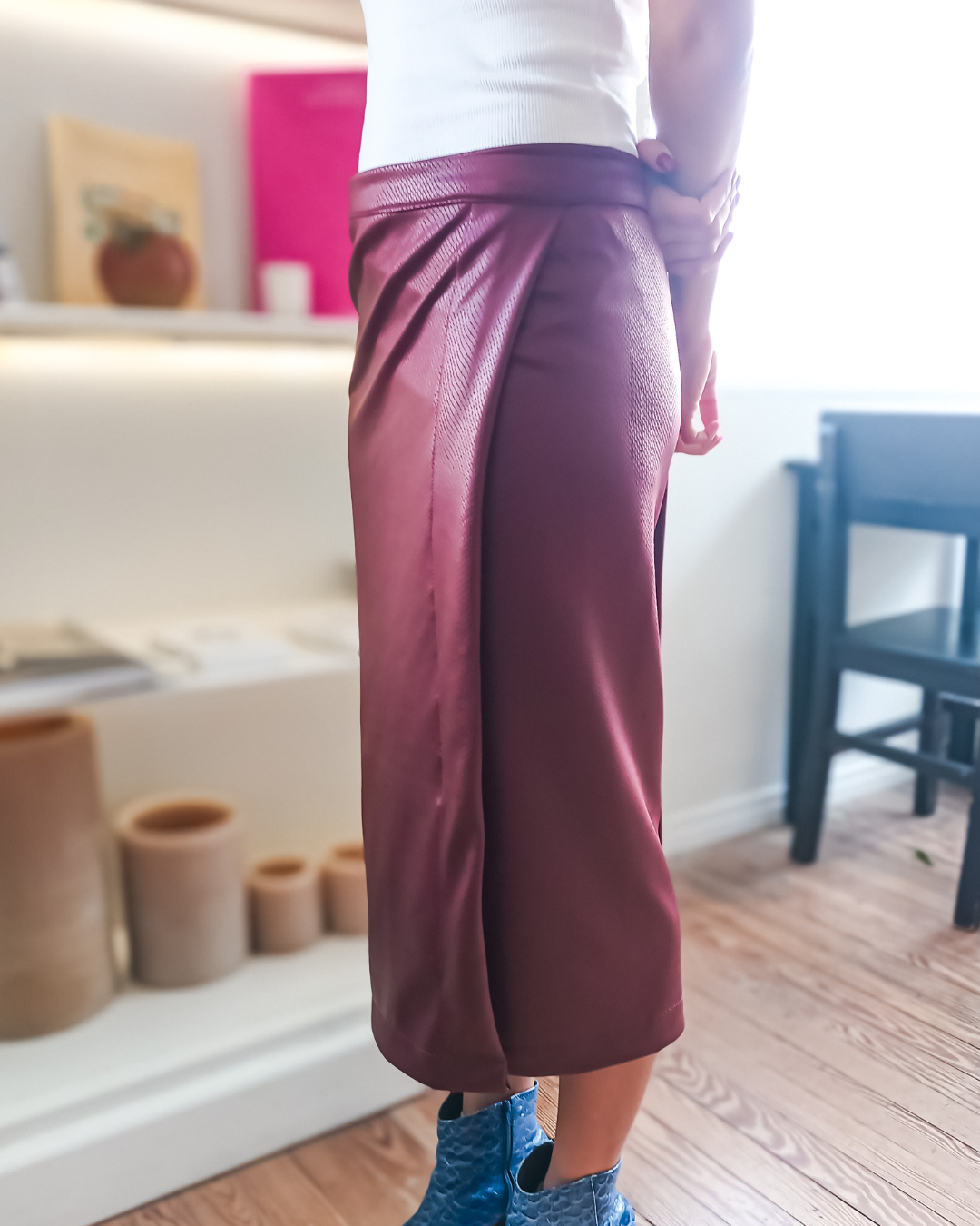 SAIA MIDI DE COURO SINTÉTICO BURGUNDY